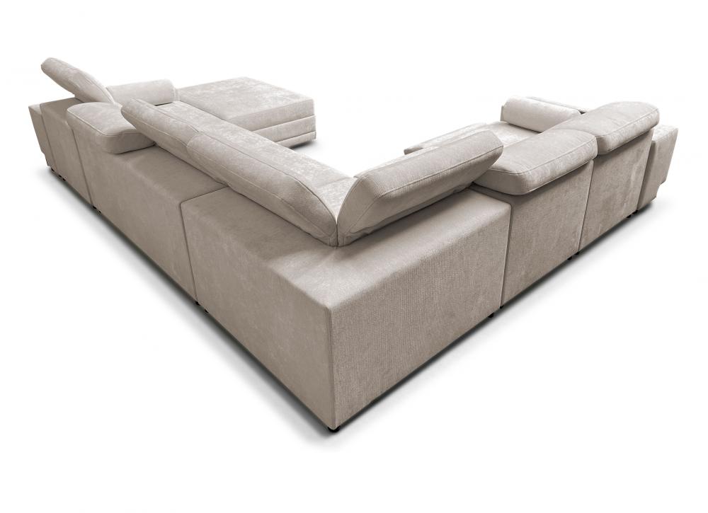 - narożnik z funkcjonalnym szezlongiem – pufa na zaczepy "krokodylki" pozwala stworzyć leżankę lub służy jako osobne siedzisko, z możliwością schowania zaczepów pod mebel.