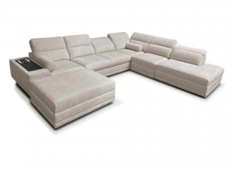 - narożnik z funkcjonalnym szezlongiem – pufa na zaczepy "krokodylki" pozwala stworzyć leżankę lub służy jako osobne siedzisko, z możliwością schowania zaczepów pod mebel.